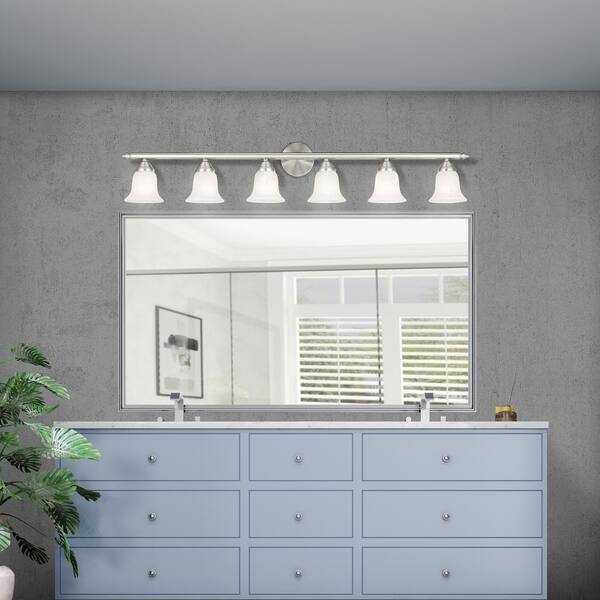 Esterbrook 48 in. 6-Light Brushed Nickel Vanity Light with White Alabaster Glass