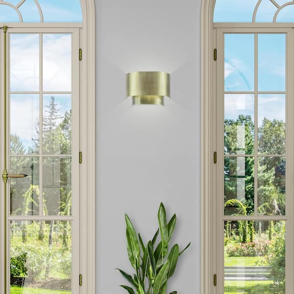 Springview 11 in. 1-Light Antique Brass ADA Wall Sconce with Steel Shade