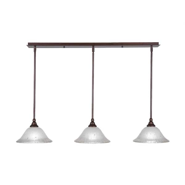 Livingston 100-Watt 3 Light Bronze, Linear Pendant Light with 10 in. Frosted Crystal Glass Shades No Bulbs Included