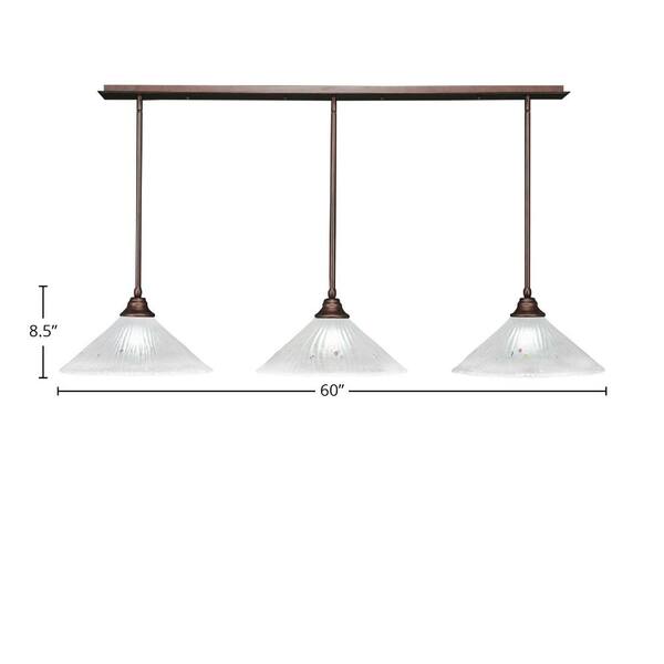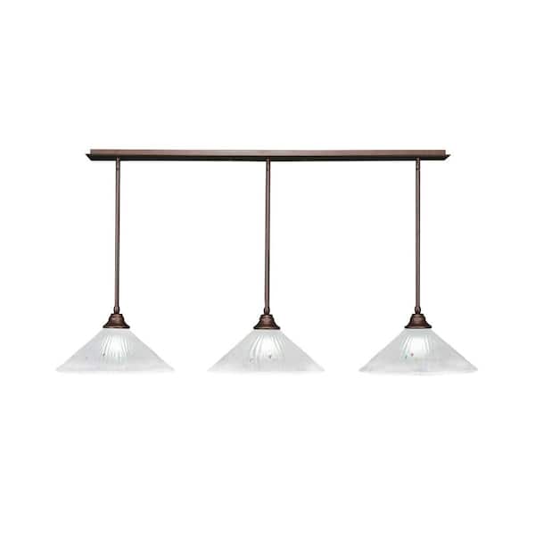 Livingston 100-Watt 3 Light Bronze Linear Pendant Light with 16 in. Frosted Crystal Glass Shades No Bulbs Included