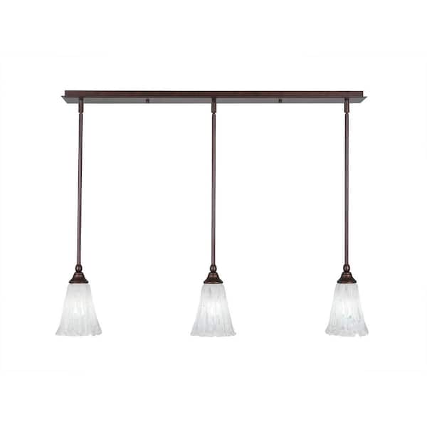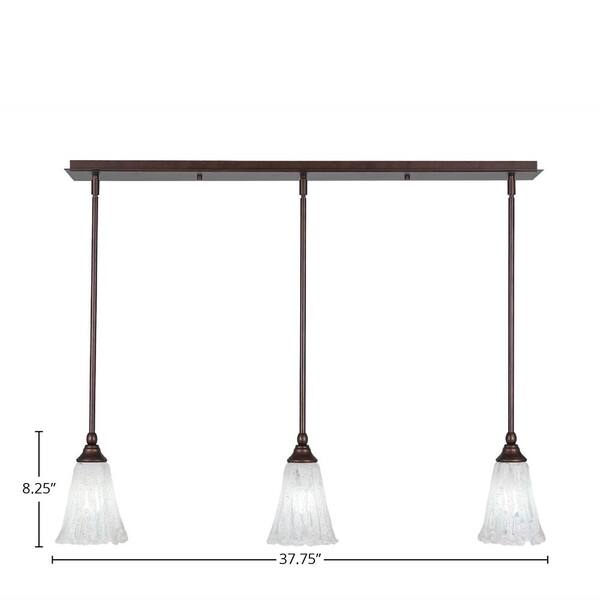 Livingston 100-Watt 3 Light Bronze, Linear Pendant Light with 5.5 in. Italian Ice Glass Shades No Bulbs Included