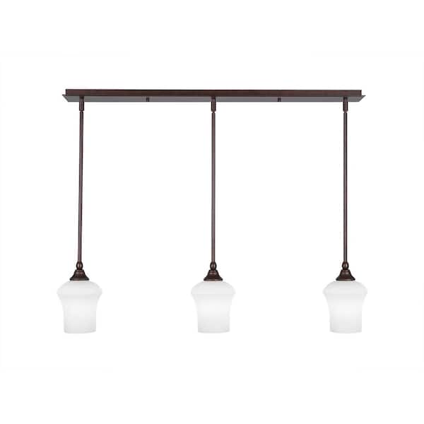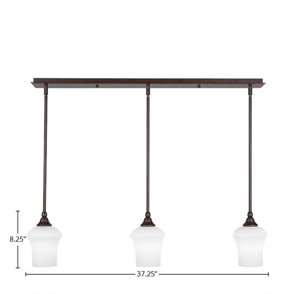 Livingston 100-Watt 3 Light Bronze, Linear Pendant Light with 5.5 in. Zilo White Linen Glass Shades No Bulbs Included