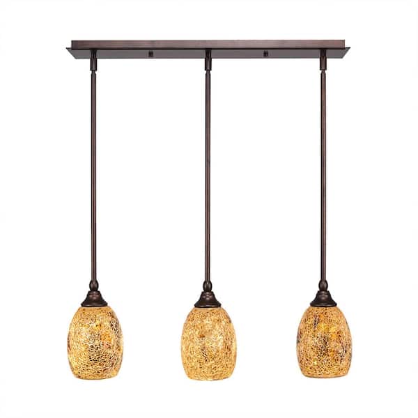 Livingston 100-Watt 3 Light Bronze, Linear Pendant Light with 5 in. Gold Fusion Glass Shades No Bulbs Included