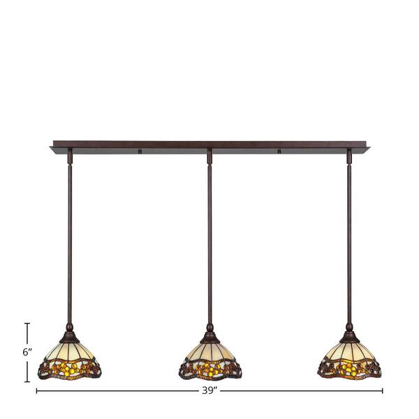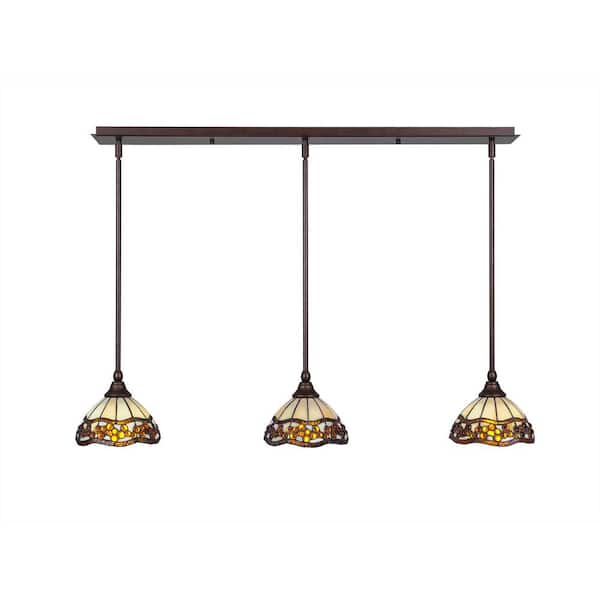 Livingston 100-Watt 3 Light Bronze, Linear Pendant Light with 7'' Roman Jewel Art Glass Glass Shades No Bulbs Included