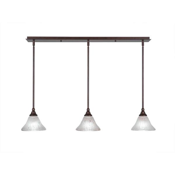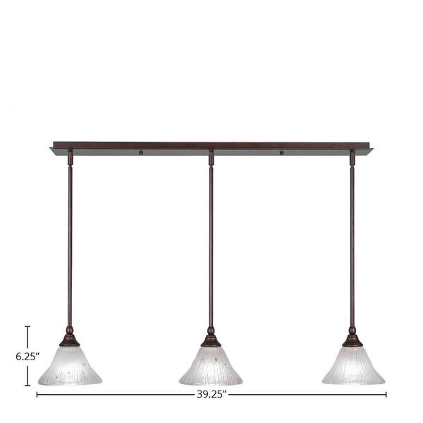 Livingston 100-Watt 3 Light Bronze, Linear Pendant Light with 7 in. Frosted Crystal Glass Shades No Bulbs Included