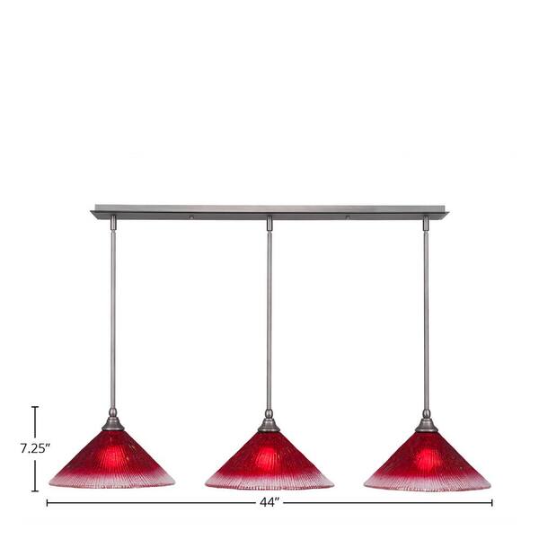 Livingston 100-Watt 3 Light Brushed Nickel, Linear Pendant Light with 12 in. Raspberry Glass Shades No Bulbs Included