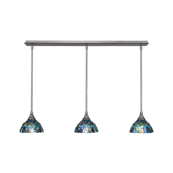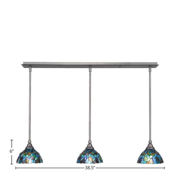Livingston 100-Watt 3 Light Brushed Nickel, Linear Pendant Light with 7 in. Art Glass Glass Shades No Bulbs Included