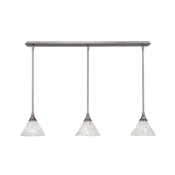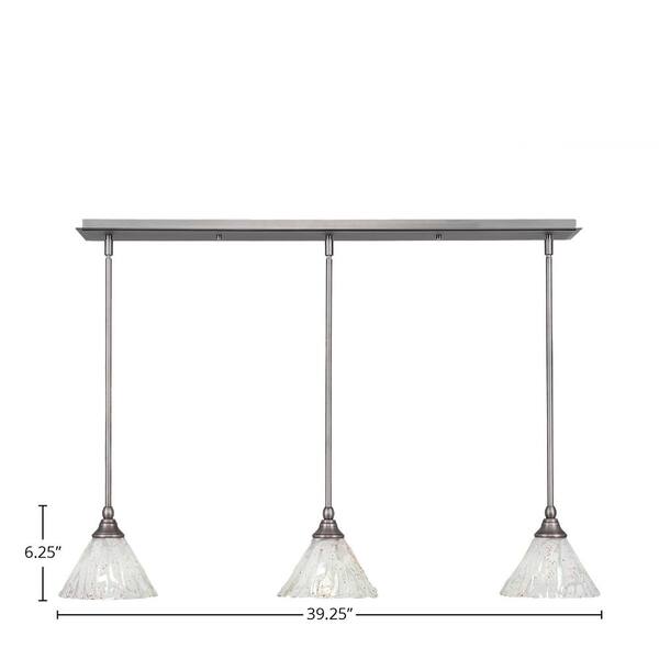 Livingston 100-Watt 3 Light Brushed Nickel, Linear Pendant Light with 7 in. Italian Ice Glass Shades No Bulbs Included