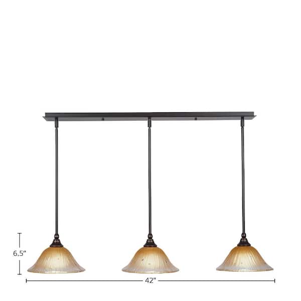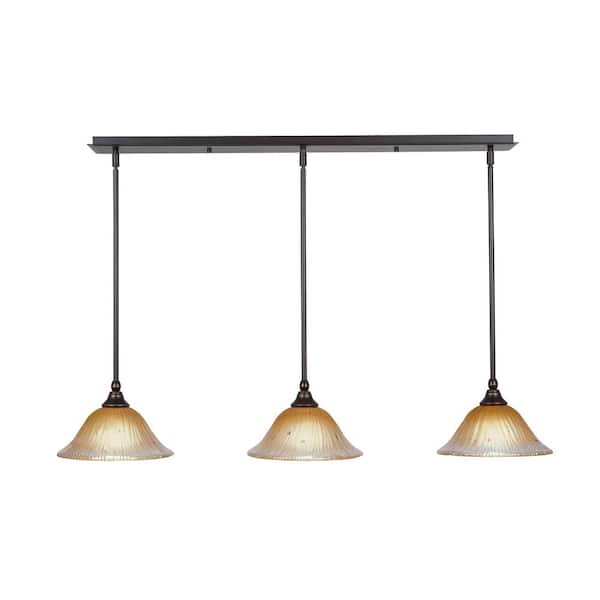Livingston 100-Watt 3 Light Dark Granite Linear Pendant Light with 10 in. Amber Crystal Glass Shades No Bulbs Included