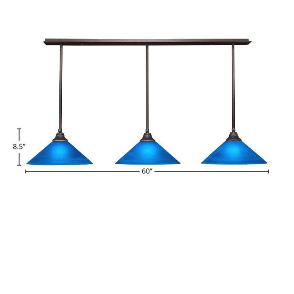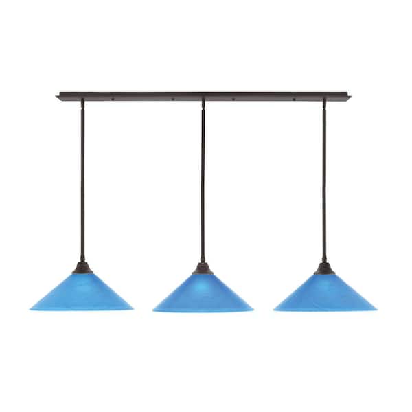 Livingston 100-Watt 3 Light Dark Granite Linear Pendant Light with 16 in. Blue Italian Glass Shades No Bulbs Included