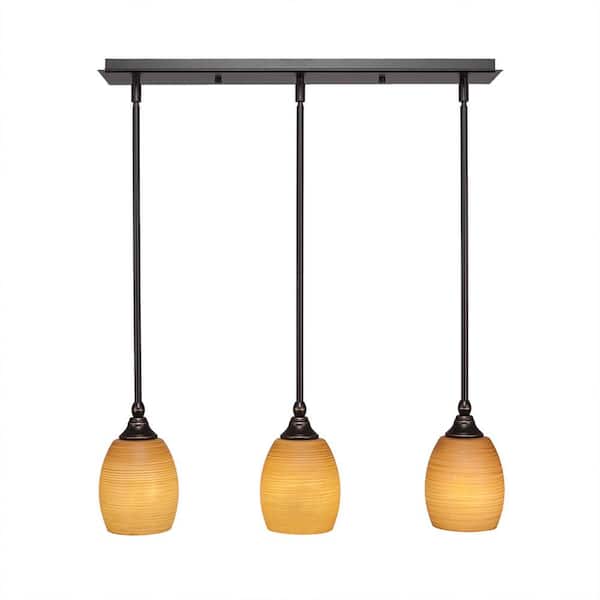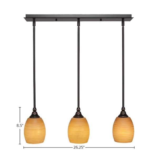 Livingston 100-Watt 3 Light Dark Granite Linear Pendant Light with 5 in. Cayenne Linen Glass Shades No Bulbs Included