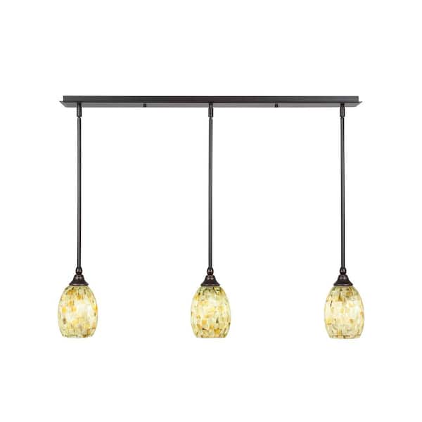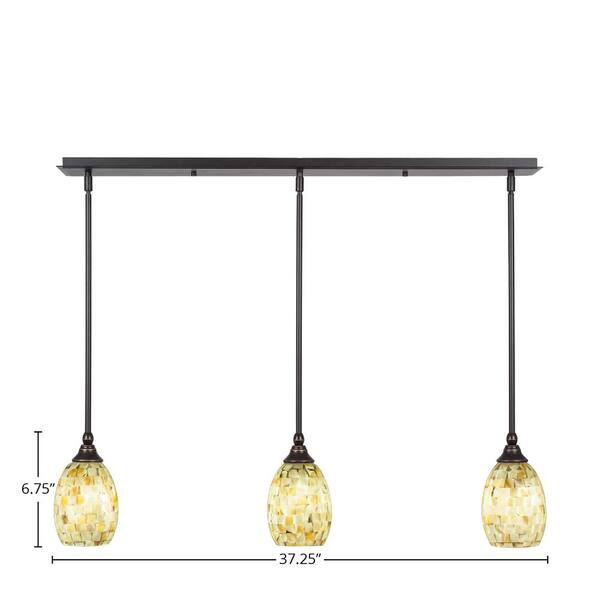 Livingston 100-Watt 3 Light Dark Granite Linear Pendant Light with 5 in. Seashell Glass Shades No Bulbs Included