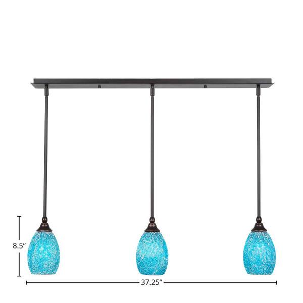 Livingston 100-Watt 3 Light Dark Granite Linear Pendant Light with 5 in. Turquoise Fusion Glass Shades No Bulbs Included