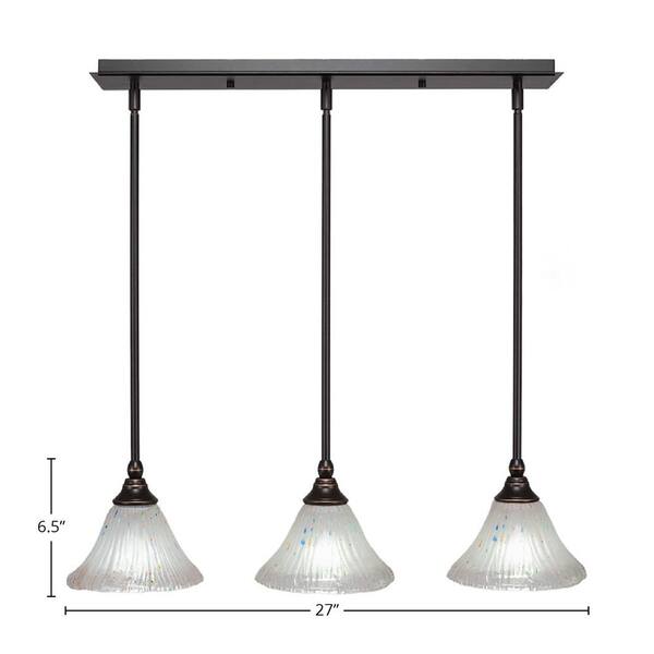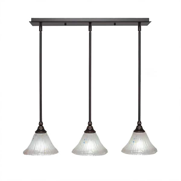 Livingston 100-Watt 3 Light Dark Granite Linear Pendant Light with 7 in. Frosted Crystal Glass Shades No Bulbs Included