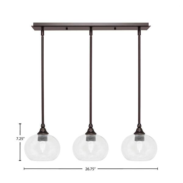 Livingston 100-Watt 3-Light Dark Granite Shaded Pendant Light with 7 in. Clear Bubble Glass Shade, No bulbs Included