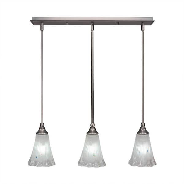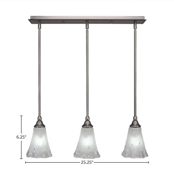Livingston 100-Watt 3 Light Nickel, Linear Pendant Light with 5.5 in. Frosted Crystal Glass Shade, No Bulbs Included