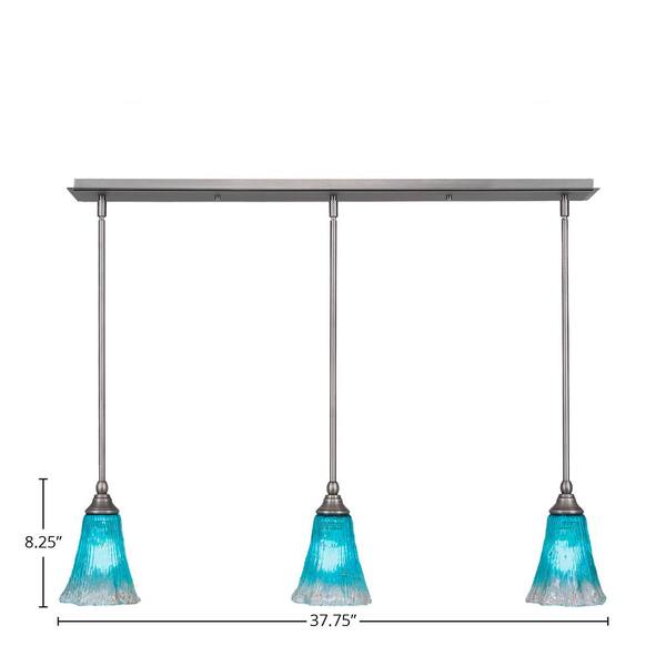Livingston 100-Watt 3 Light Nickel, Linear Pendant Light with 5.5 in. Teal Crystal Glass Shades No Bulbs Included