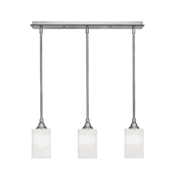 Livingston 100-Watt 3-Light Nickel Shaded Pendant Light with 4 in. White Marble Glass Shades, No Bulbs