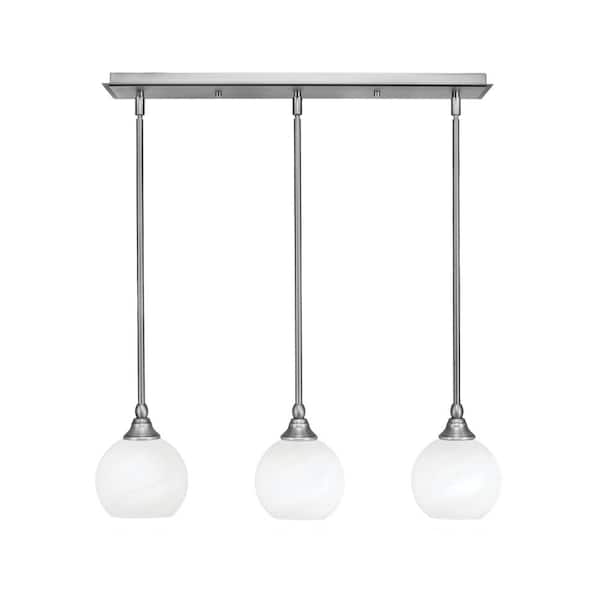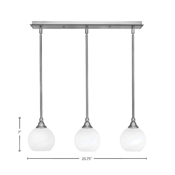 Livingston 100-Watt 3-Light Nickel Shaded Pendant Light with 5.75 in. White Marble Glass Shades, No Bulbs