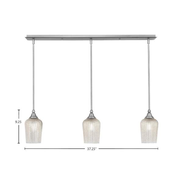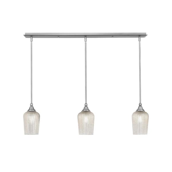 Livingston 100-Watt 3-Light Nickel Shaded Pendant Light with 5 in. Silver Glass Shades, No Bulbs