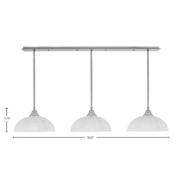 Livingston 3-Light Brushed Nickel Linear Chandelier for Kitchen Island with 13 in. Clear Ribbed Glass Shades, No Bulbs