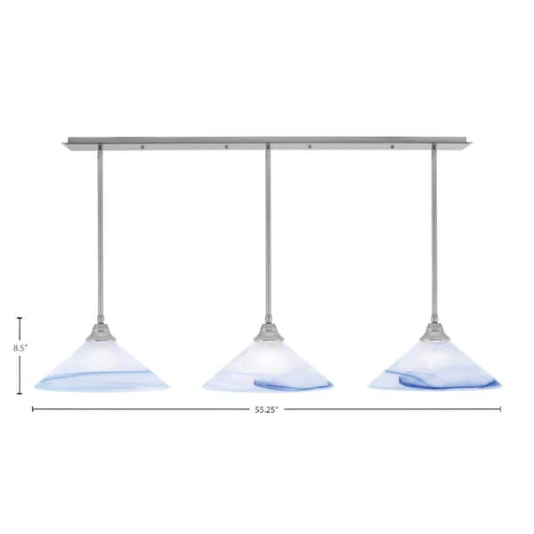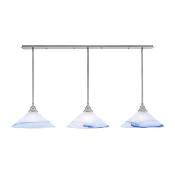 Livingston 3-Light Brushed Nickel Linear Chandelier for Kitchen Island with 16 in. Blue Swirl Glass Shades, No Bulbs