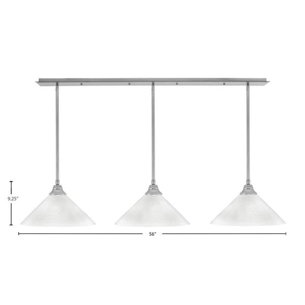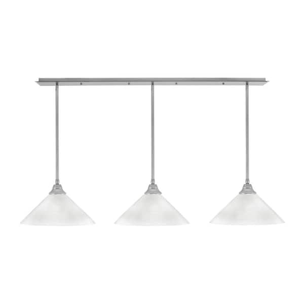 Livingston 3-Light Brushed Nickel Linear Chandelier for Kitchen Island with 16 in. White Marble Glass Shades, No bulbs