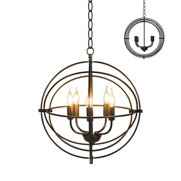 20 in. Spherical 5-Light Metal Black Chandelier with Pivoting Interlocking Rings (Bulbs Not Included)
