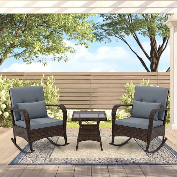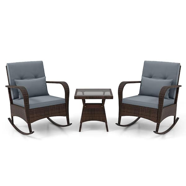 3-Piece Wicker Patio Conversation Set with Gray Cushions