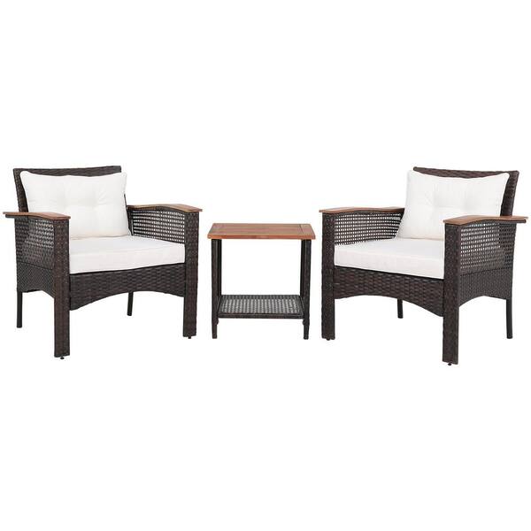 3-Pieces Wicker Patio Conversation Set with Off White Cushions