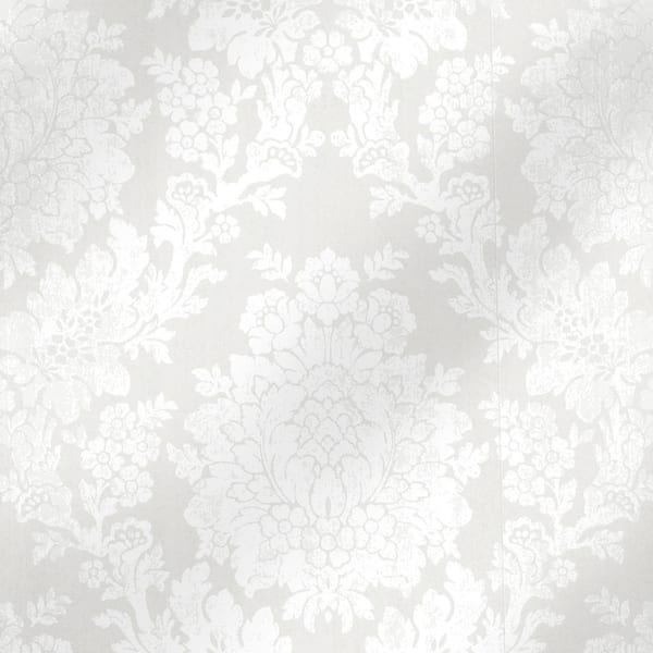 Liza Platinum Roselle Damask Strippable Wallpaper Covers 56.4 sq. ft.