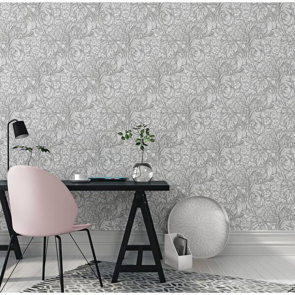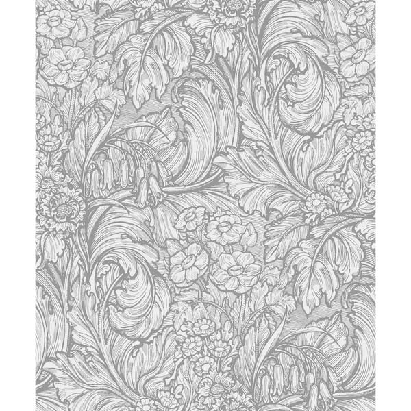 Llewelyn-Bowen Off The Wall Grey Floral Hedgerovia Matte Finish Non-Pasted Non-Woven Wallpaper Sample