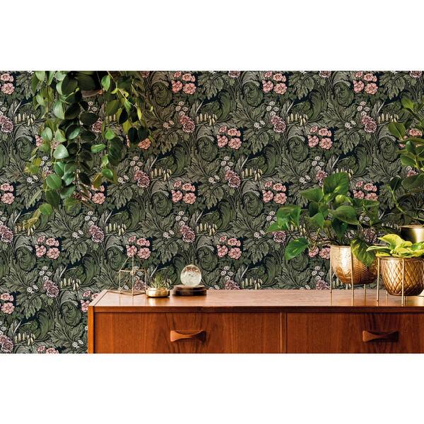 Llewelyn-Bowen Off The Wall Pink Floral Hedgerovia Matte Finish Non-Pasted Non-Woven Wallpaper Roll