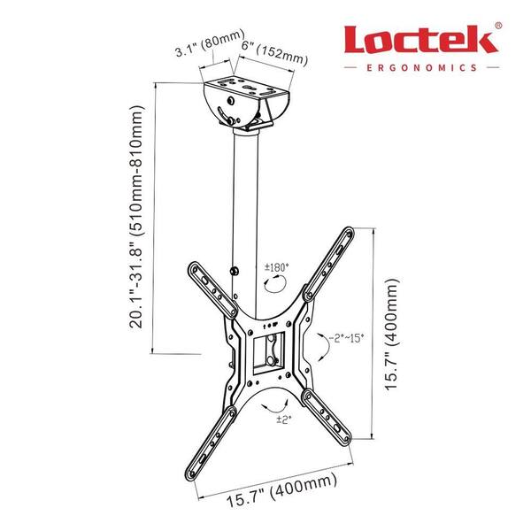 Adjustable Tilting Wall Ceiling TV Mount Fits Most 26 in. - 55 in. LCD LED Plasma Monitor Flat Panel Screen Display
