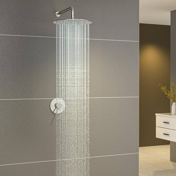 1-Spray Patterns with 1.8 GPM 10 in. Wall Mount Dual Shower Heads with Brass Body Valve in Brushed Nickel
