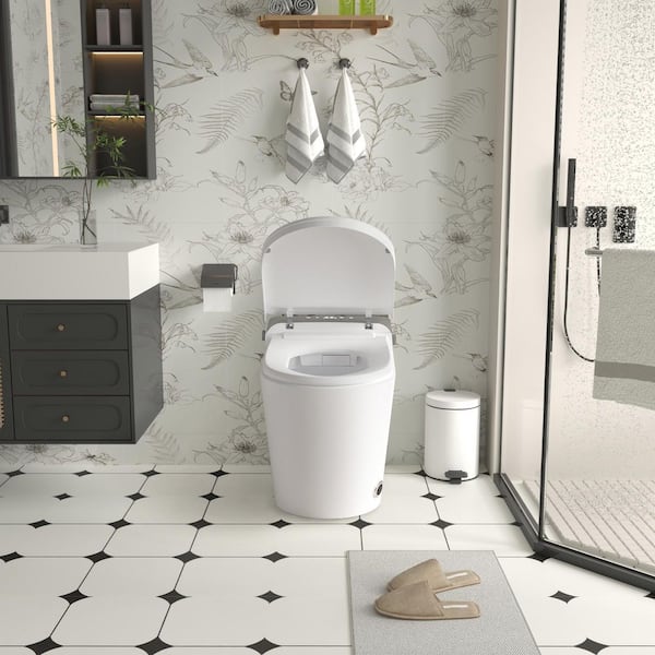 12 in. Smart Toilet 1.28 GPF Single Flush Elongated Toilet in White Seat Included with Deodorizer