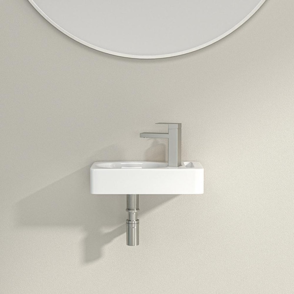 15.7 in. x 8.6 in. White Ceramic Rectangular Wall Hung Vessel Sink with Single Faucet Hole for Small Bathroom