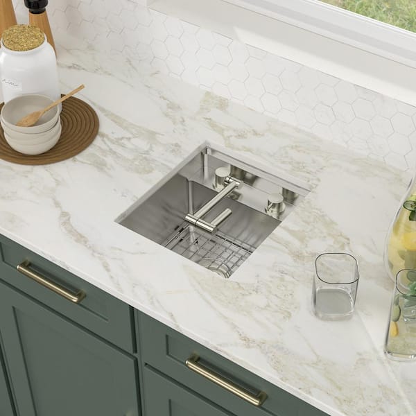 16-Gauge Stainless Steel 15 in. Single Bowl Undermount Bar Sink with Folding Faucet