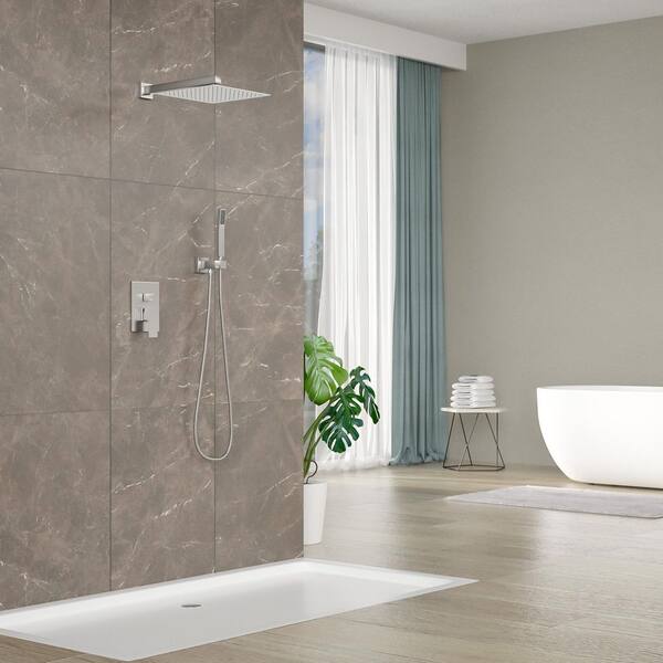2-Spray 12 in. Dual Fixed and Handheld Shower Head 1.8 GPM in Brushed