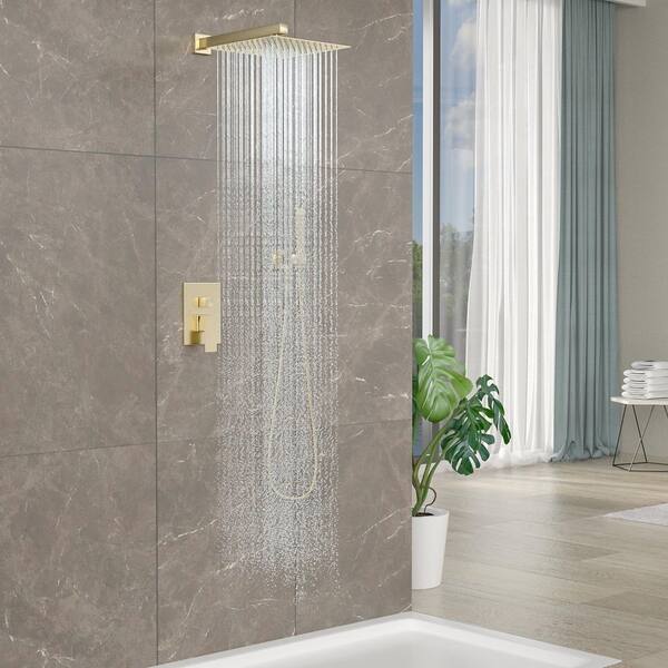 2-Spray 12 in. Rain Shower Dual Fixed and Handheld Shower Head 1.8 GPM in Gold