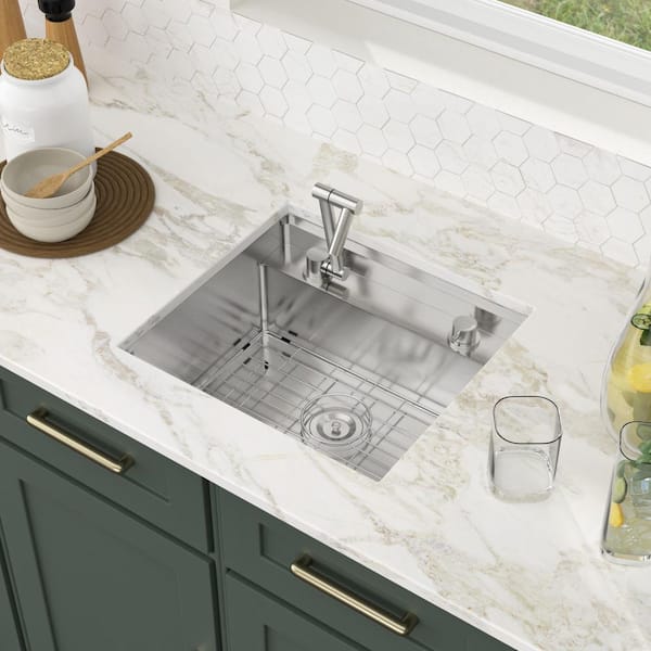 21 in. Undermount Sink Single Bowl 16-Gauge Stainless Steel Kitchen Sink with Folding Faucet