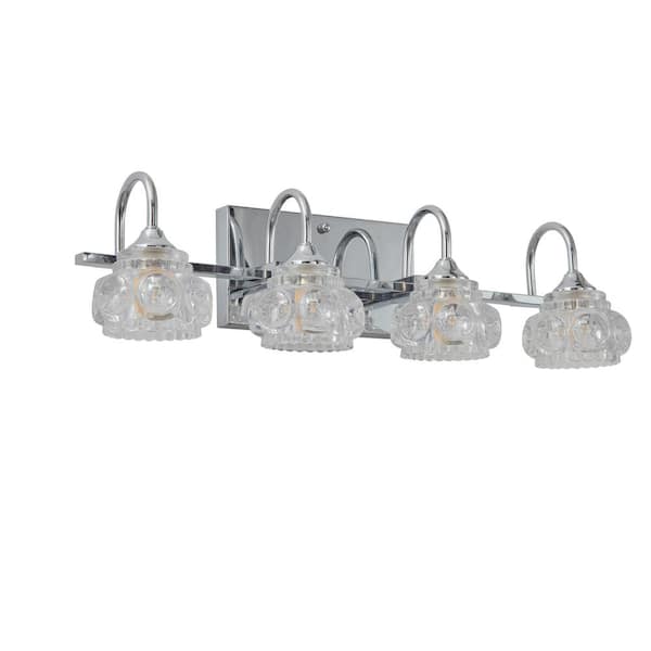 22.8 in. 4-Light Brushed Nickel Retro Wall Bathroom Vanity Light with Crystal Shade, G9 Bulbs no Include