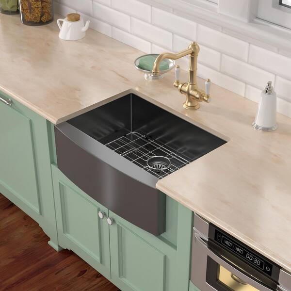 24 in. Gunmetal Black 16-Gauge Farmhouse Apron Front Single Bowl Stainless Steel Kitchen Sink with Bottom Grid