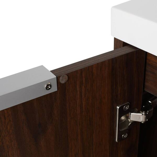 24 in. W x 18 in. D x 19 in. H Bath Vanity in California Walnut with Resin Top in White for Small Bathroom