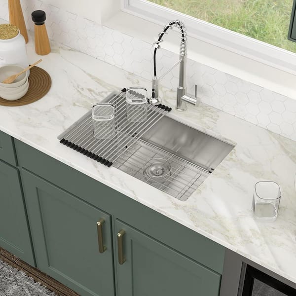 26 in. Undermount Kitchen Sink 16-Gauge Stainless Steel Single Bowl Sink with Bottom Grid