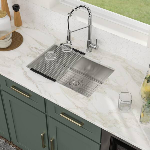 26 in. Undermount Sink Single Bowl 16-Gauge Stainless Steel Kitchen Sink with Drain and Bottom Grid