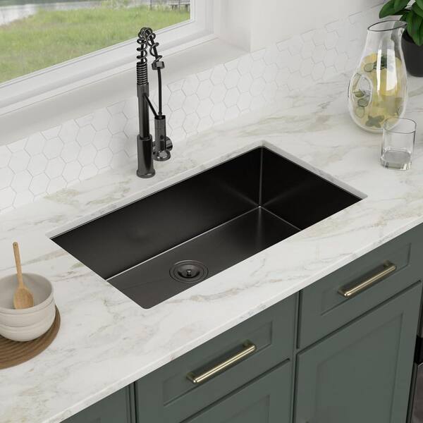 30 in. Undermount Sink Single Bowl 18-Gauge Gunmetal Black Stainless Steel Kitchen Sink with Bottom Grids