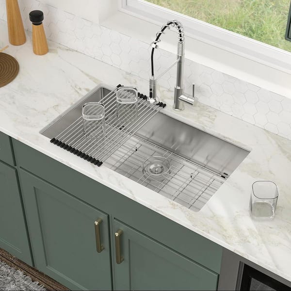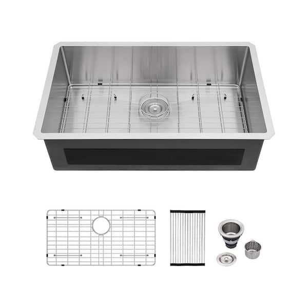 32 in. Undermount Single Bowl 18-Gauge Stainless Steel Kitchen Sink with Bottom Grids