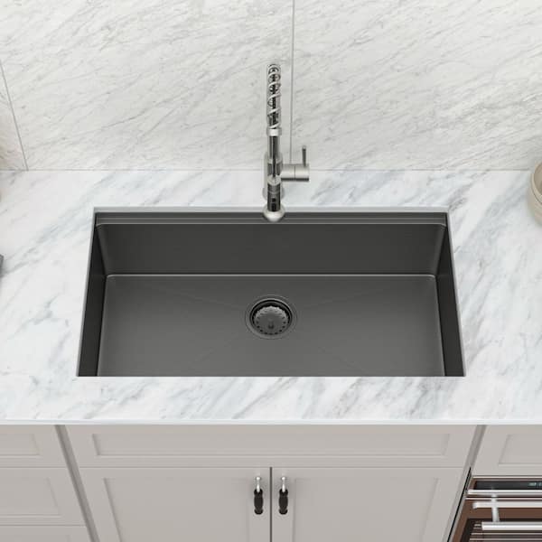 33 in. Undermount Workstation Sink Single Bowl 16-Gauge Gunmetal Black Stainless Steel Kitchen Sink with Textured Finish
