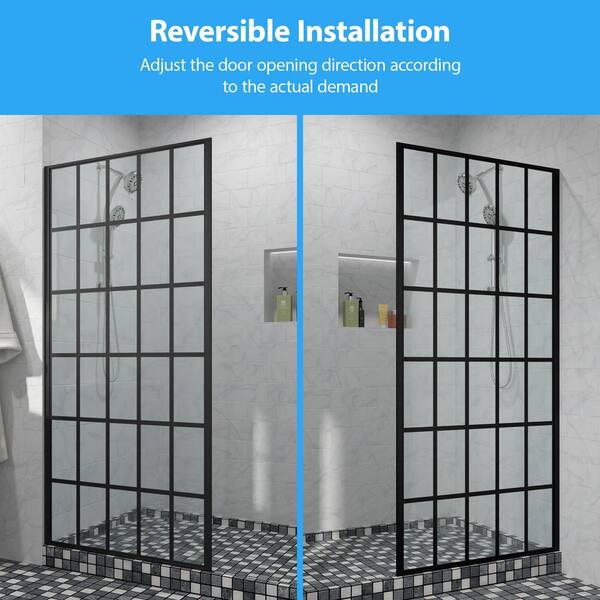 38 in. W x 72 in. H Fixed Single Panel Frameless Shower Door/Enclosure in Matte Black with Open Entry Design